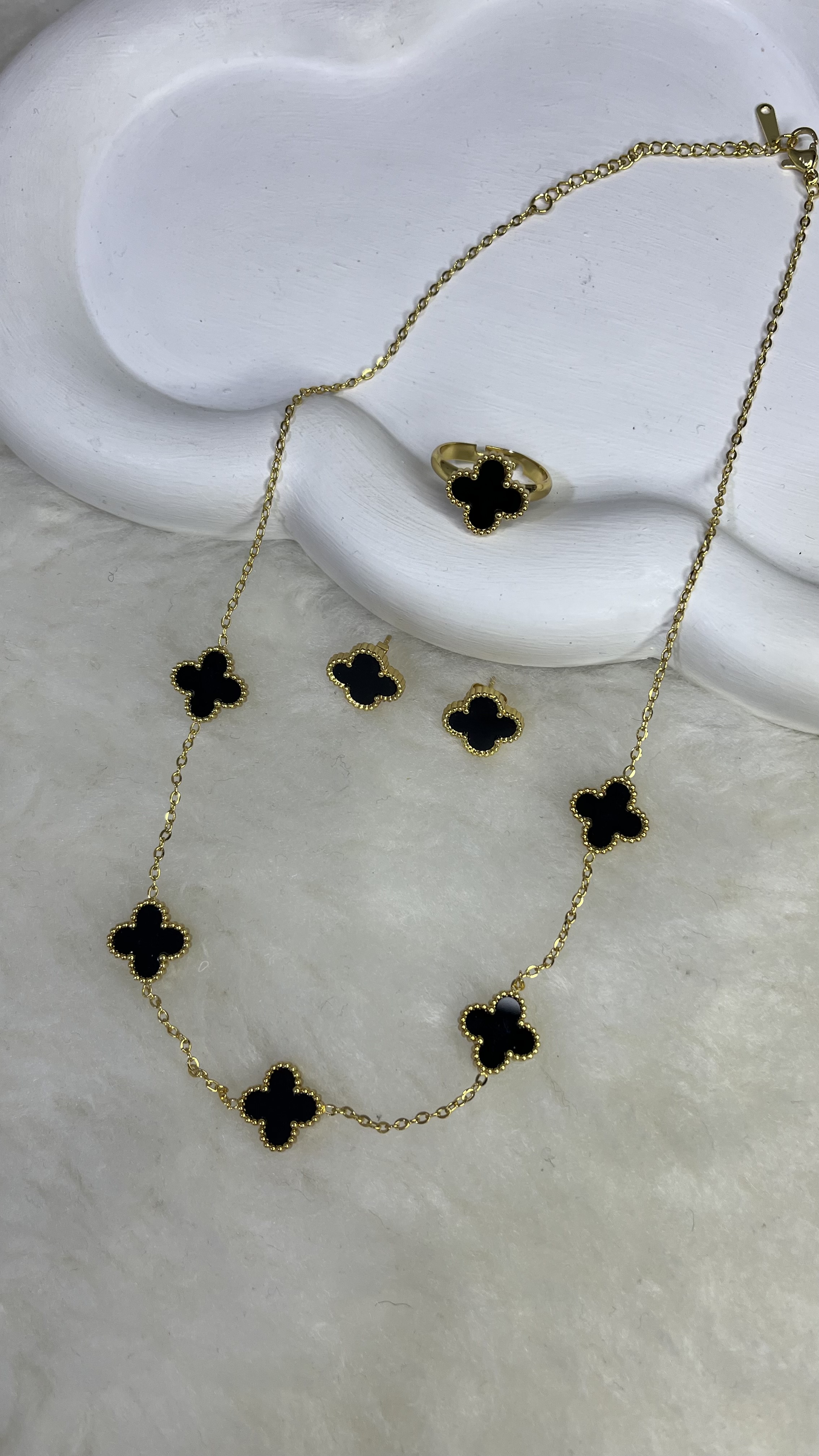 ست گردنبند 5 گل و گوشواره میخی و انگشتر ونکلیف