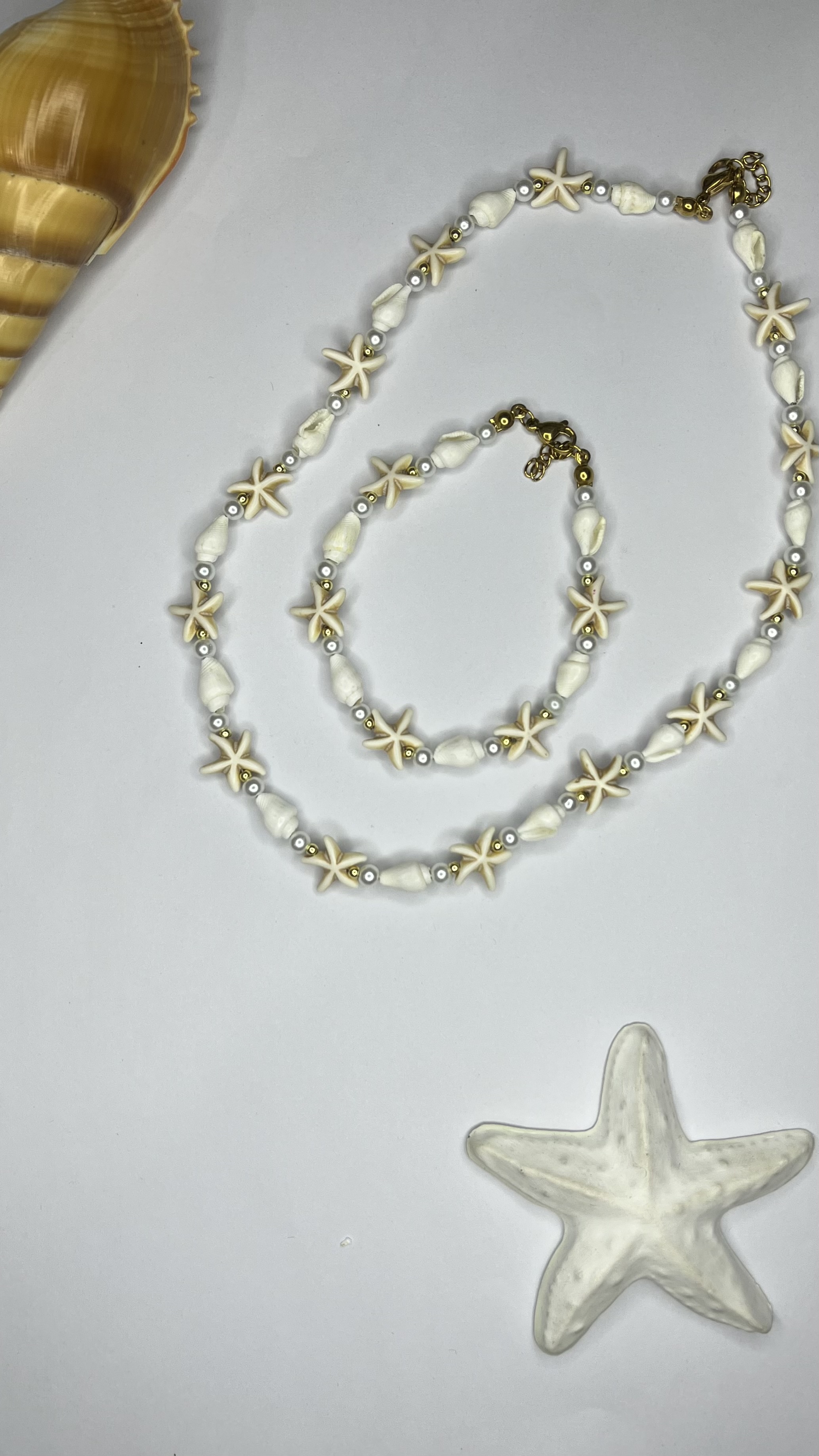 ست گردنبند و دستبند صدفی ستاره ای دستساز