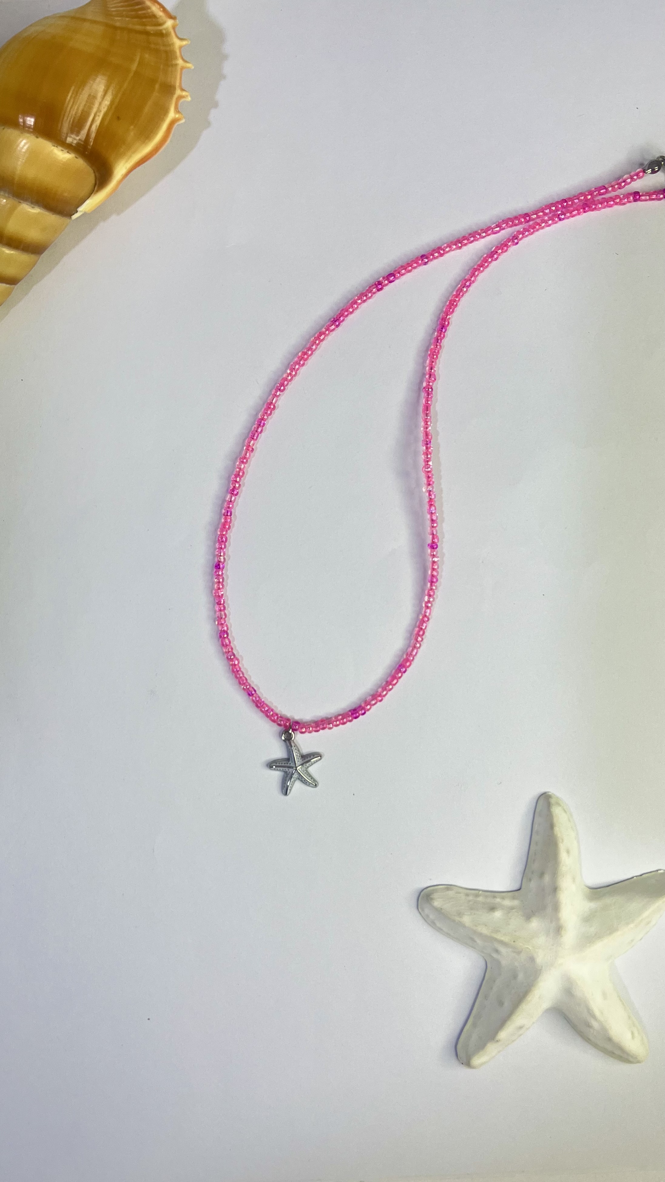 گردنبند مروارید ریز پلاک ستاره ای اتصالات رنگ ثابت وضد حساسیت تنوع رنگ مروارید ;سفید، مشکی، صورتی، آبی